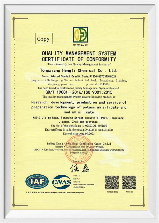 Tongxiang Hengli Chemical Co., Ltd. integrira razvoj proizvoda, proizvodnju i prodaju! Integrirajući tehničke usluge s korisničkim iskustvom kao glavnim prioritetom, uživa izvrsnu reputaciju u industriji. Modulo(M):3.10-3.40 Tekući natrijev silikat ima izvanredne performanse u otpornosti na eroziju različitim korozivnim medijima zbog svoje izvrsne otpornosti na kiseline i lužine. Njegova jedinstvena molekularna struktura i savršena kombinacija mehaničkih svojstava omogućuju ne samo održavanje tvrdoće materijala, već i osiguravanje potrebnog elastičnog pufera kako bi se osigurala stabilnost i sigurnost materijala u teškim uvjetima. Ove karakteristike uvelike produljuju životni vijek materijala, smanjuju troškove održavanja i značajno poboljšavaju sigurnost industrijske opreme.