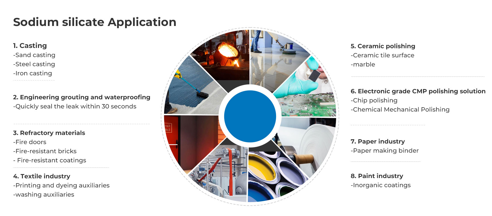 Izbor industrijskih materijala postaje sve raznolikiji i složeniji, a Modulo(M):3.10-3.40 Liquid Sodium Silicate postao je idealan izbor za mnoge industrije zbog svoje stabilne i pouzdane otpornosti na koroziju. Njegova izvrsna izvedba ne samo da zadovoljava potrebe trenutnog industrijskog okruženja, već također postavlja čvrste temelje za razvoj budućih industrijskih materijala. Uz stalne inovacije tehnologije, ovaj će materijal pokazati svoju nezamjenjivu vrijednost u više područja i postati važna pokretačka snaga za industrijske inovacije.